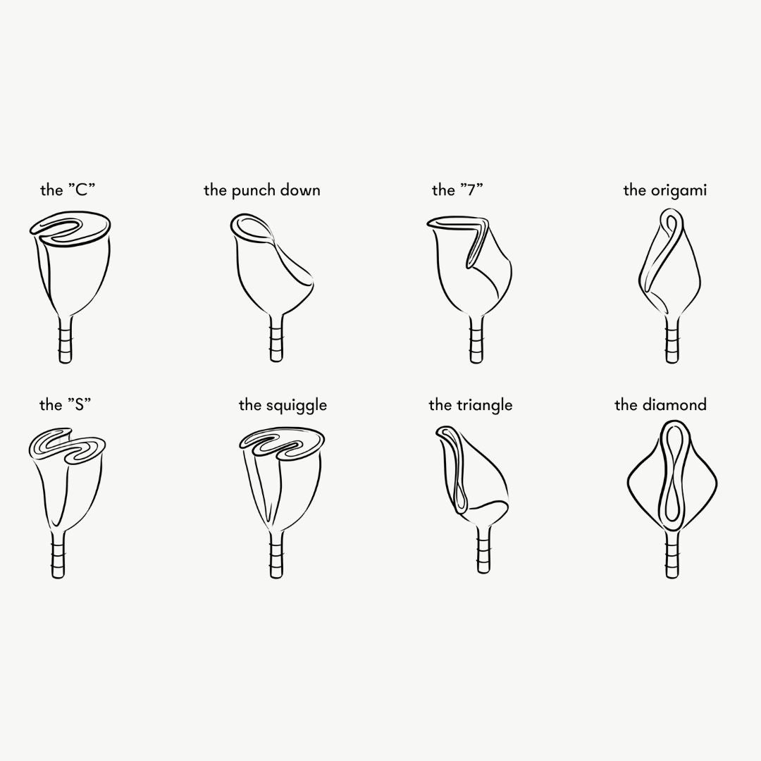 Fold the cup into a C-shape by flattening it and then folding it in half. This shape makes insertion smoother and more intuitive.
